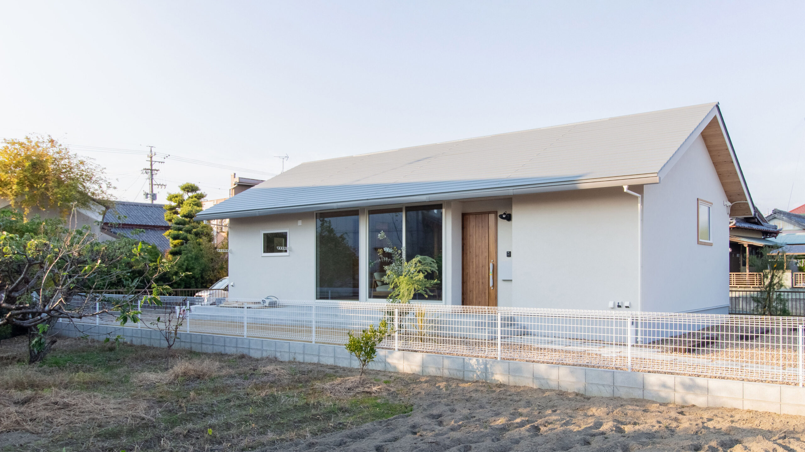 シンプルな佇まいに、軒天の羽目板や木枠がナチュラルな