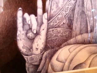 ↑ ボールペンの濃淡のみの描写で、仏像の経年変化もとても