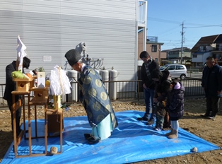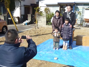ご家族4人全員で我が家の無事の完成をお祈り。