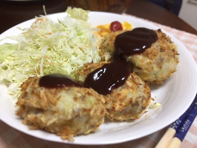 また、昨日は、「揚げない」牛肉コロッケを手作りしました。