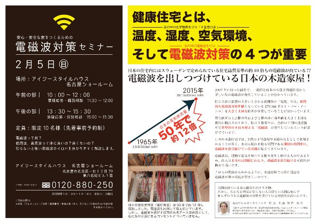 そして、2月5日(日)は、今や大人気のセミナー 『電磁波セミナー』 を開催します!