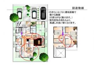 この様な回遊動線、一筆がき動線を取り入れたプランでは、