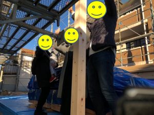 お施主様には、一本目の柱を建ててもらい、記念撮影!