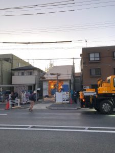 昼間には1階部分が完了し、