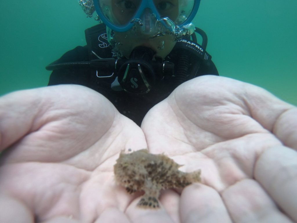ちなみにこれはカエルアンコウという魚です。泳ぐのが苦手な魚なのでこうやって手ですくって持てちゃいます。