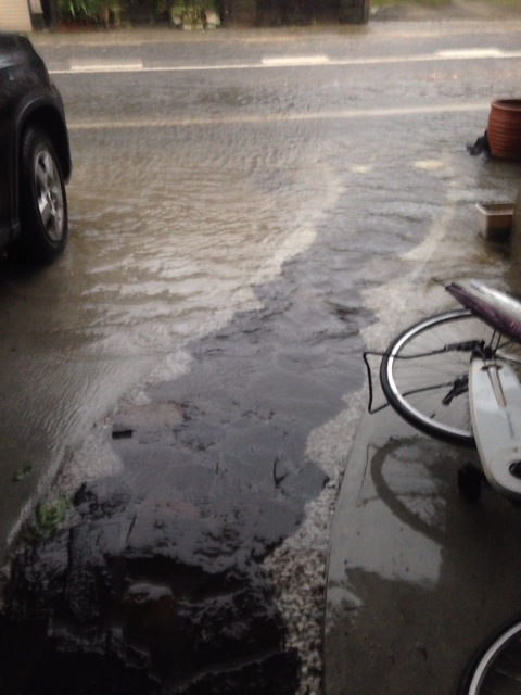 午前8時に豊橋へ上陸し豊川も同勢力を受け自宅待機で勢力を監視していましたが高圧洗浄機並みの暴風雨と雨量で、何と初めて自宅前が川状態に。