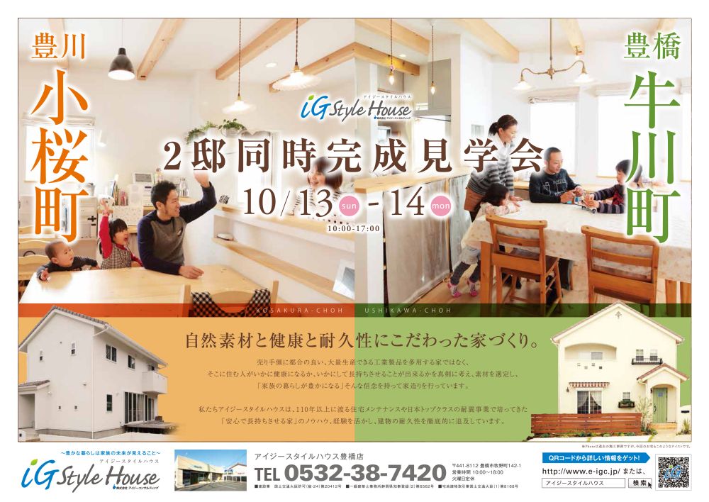 次回イベントは10月13・14日に豊橋・豊川でダブル完成見学会となります。