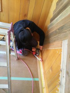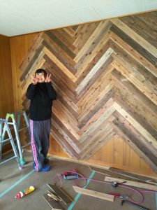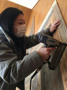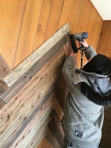 ヘリンボーン&天井ベニアをDIY女子たちが施工しました。