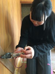 今回はエアー工具のピンネイルにもチャレンジしてもらいました。