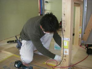 トレーナーのみで作業をする。みのる君。