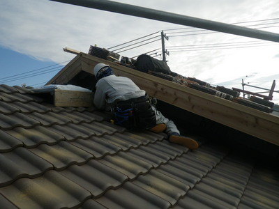 瓦を上げ終わり、これから施工をおこなっていきます。
