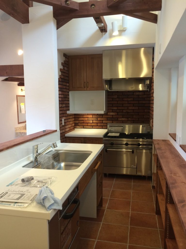 業務用コンロセットにハマユウさんのキッチンを組み合わせて施工するという、