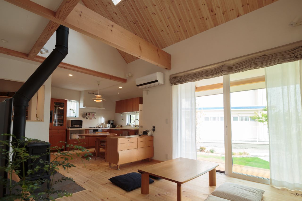 4月ですので断熱性能とか、薪ストーブ体感とか、アピールポイントが最大限に発揮できないのですが・・・春らしい心地いい空間を体感していただき、オーナー様の実感(イイも悪いも)をお話しいただく予定です。