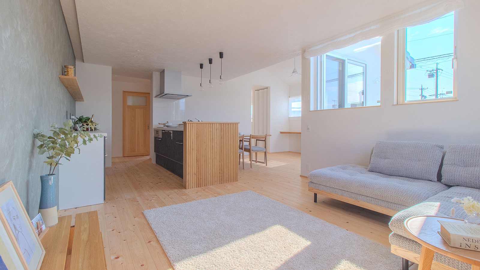 ・家事動線と分けることで、よりくつろげるリビングにしました。