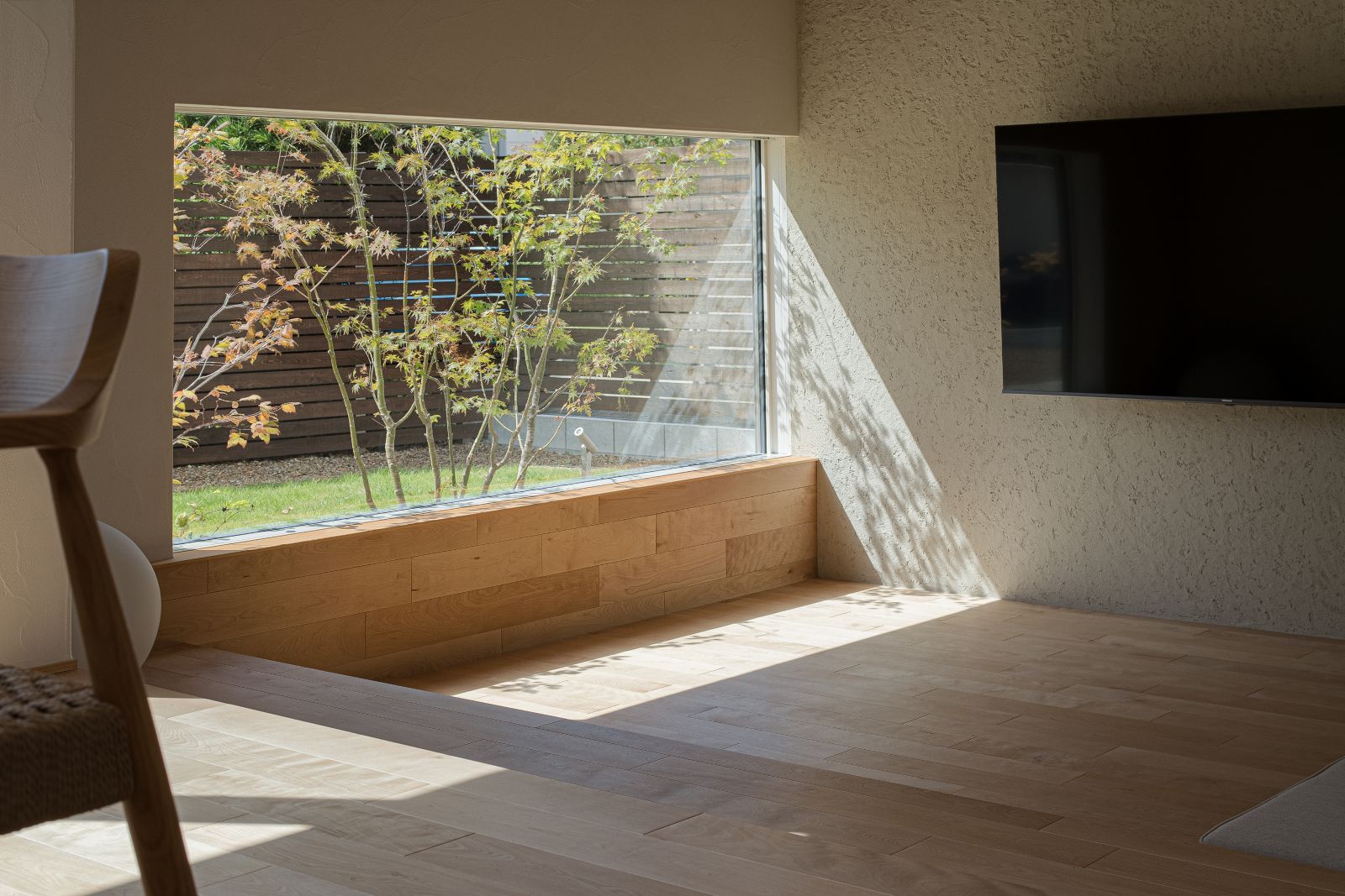 庭や空をふんだんに取り込めるよう設計した大開口の窓。