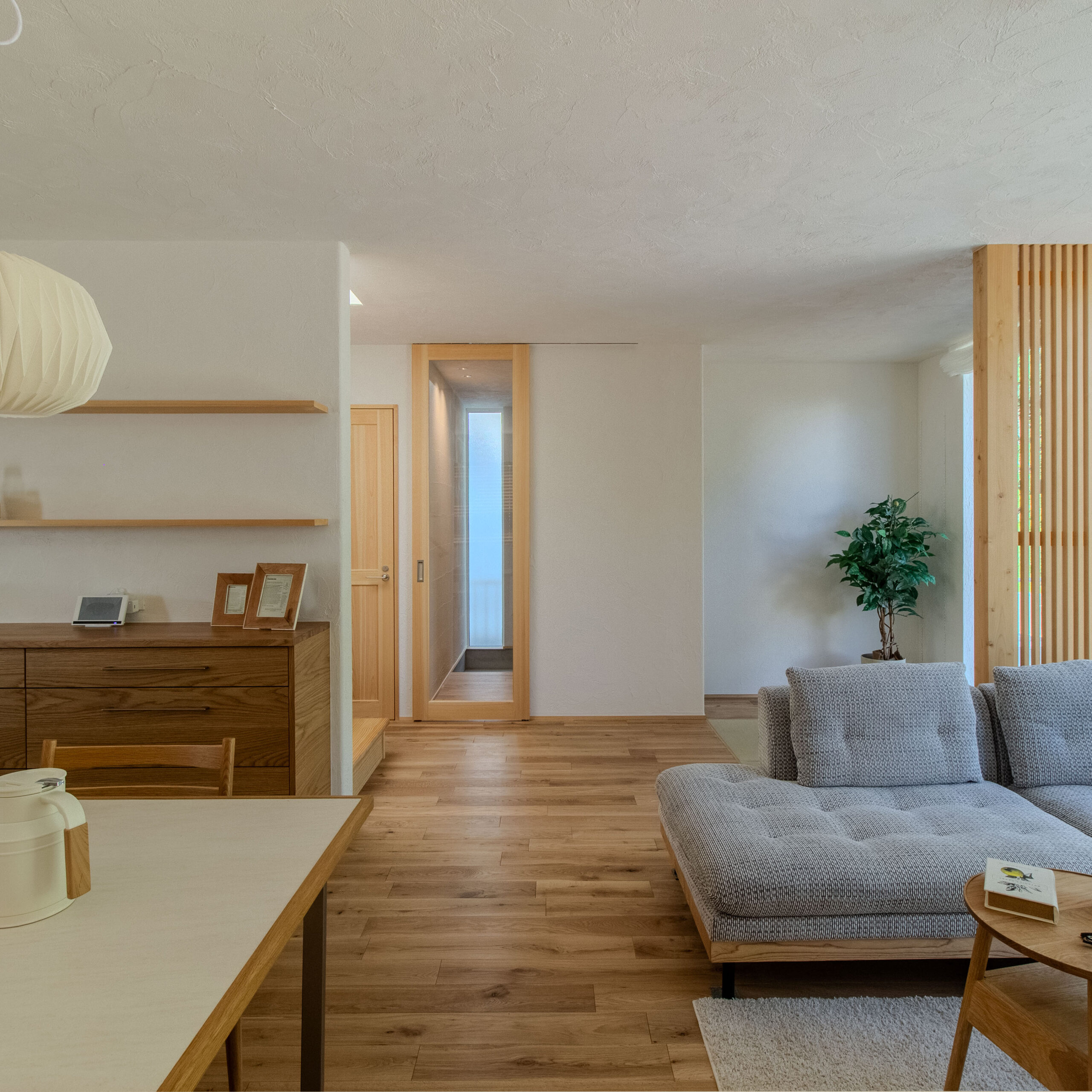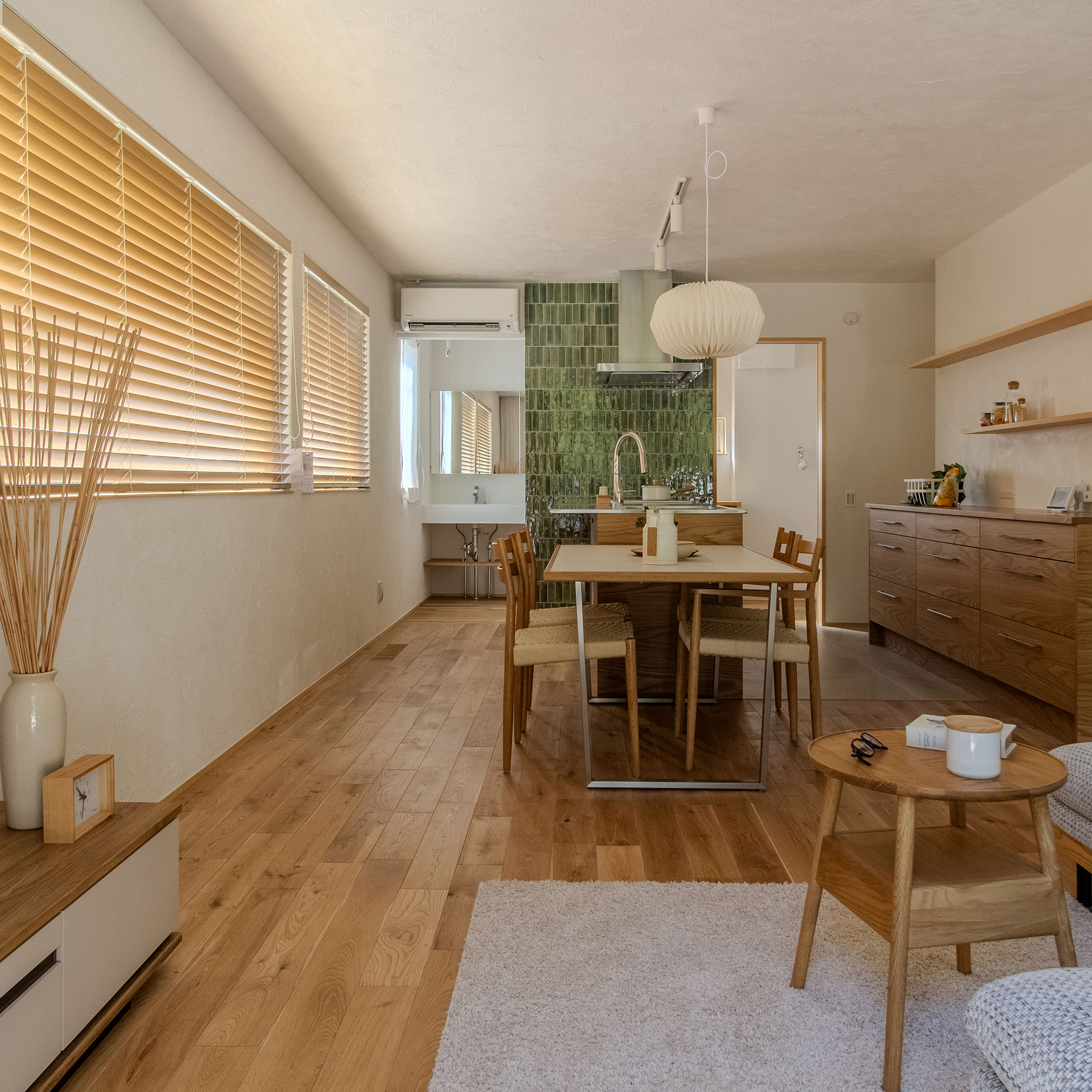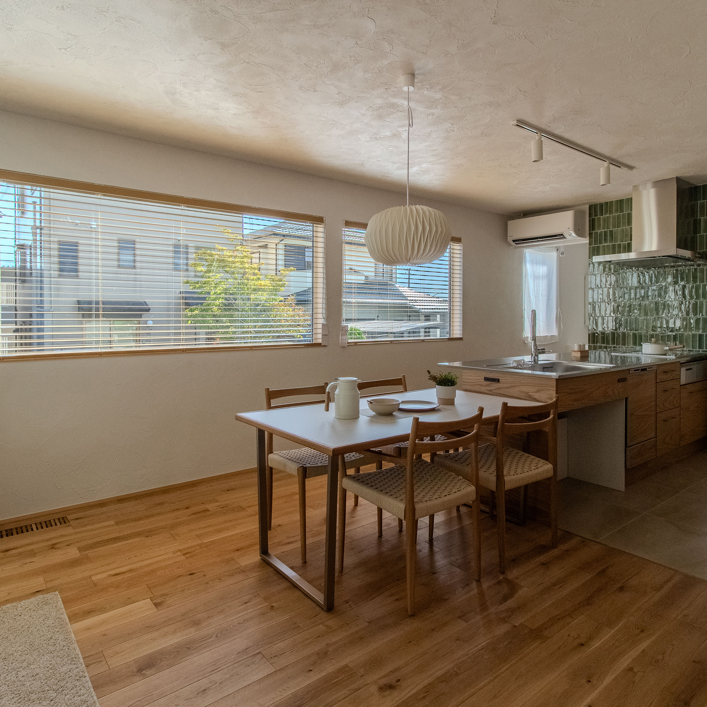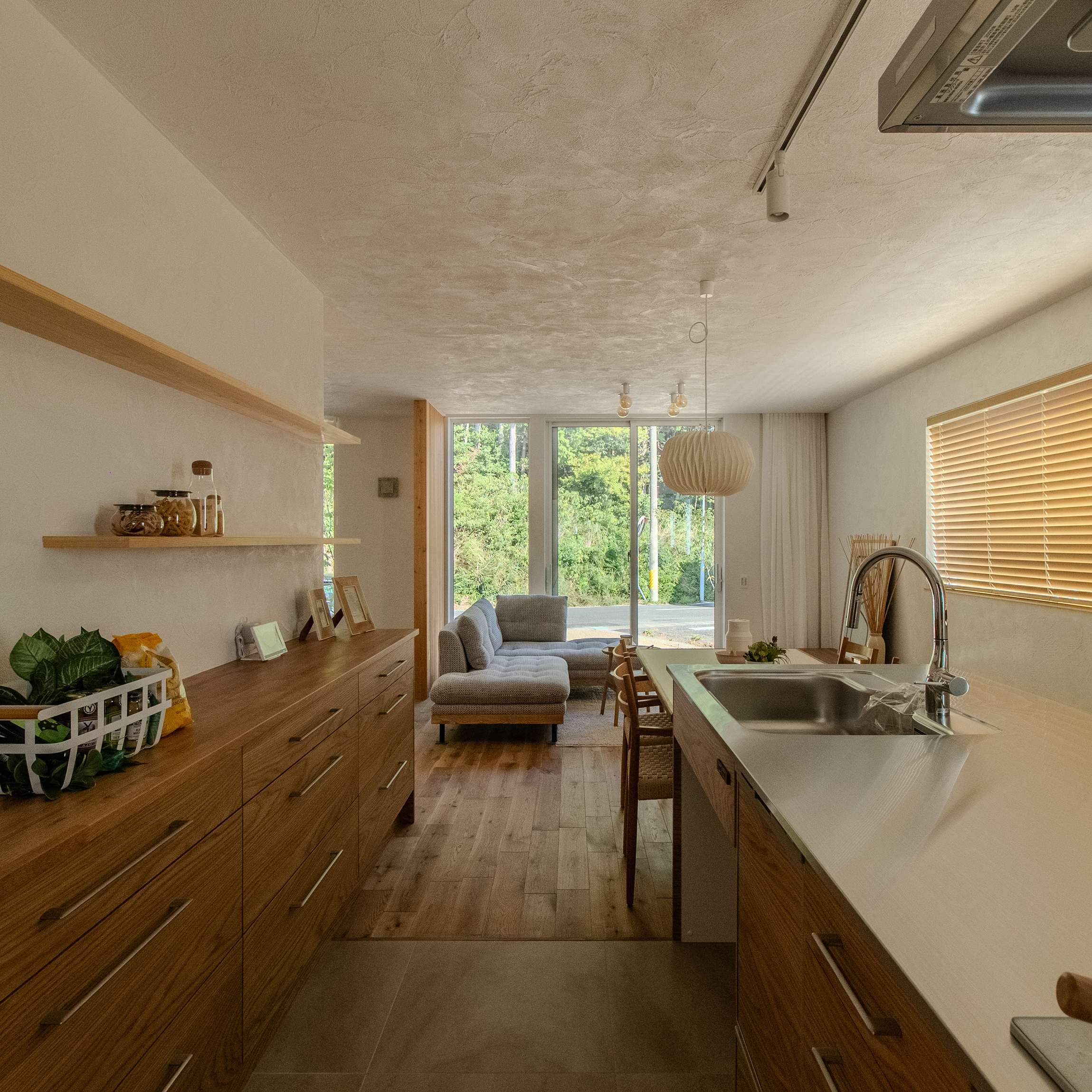 LDKや畳コーナーまで見渡せるキッチン配置。
