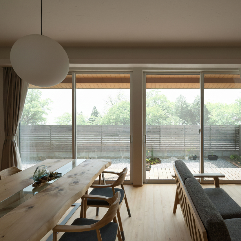 天井・壁の漆喰、無垢の木床は、アイジースタイルハウスの標準仕様。床下エアコンの快適さも体感ください。