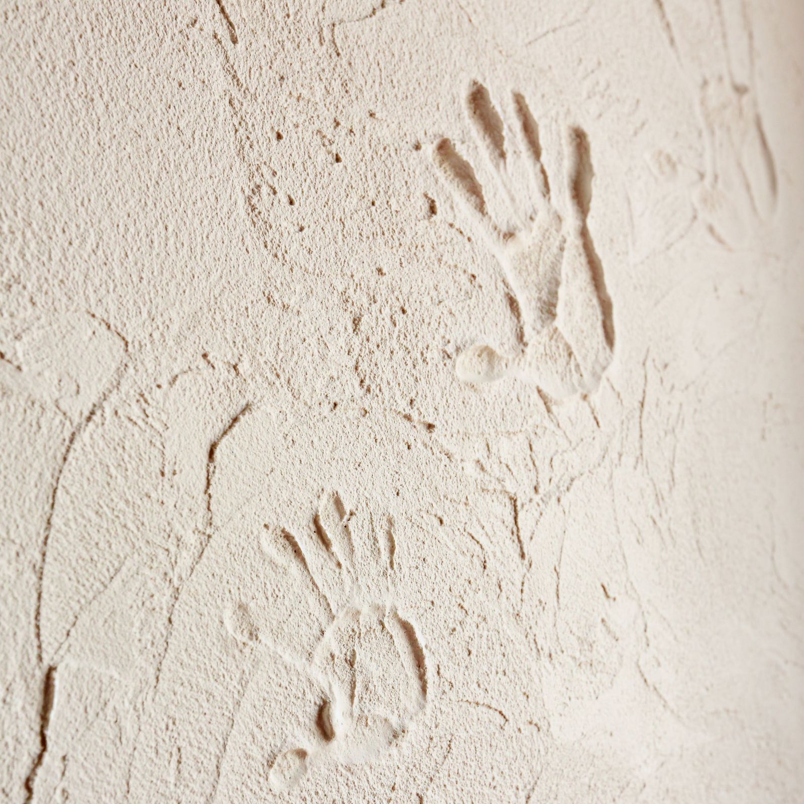 漆喰塗り体験と、その手形などを残して