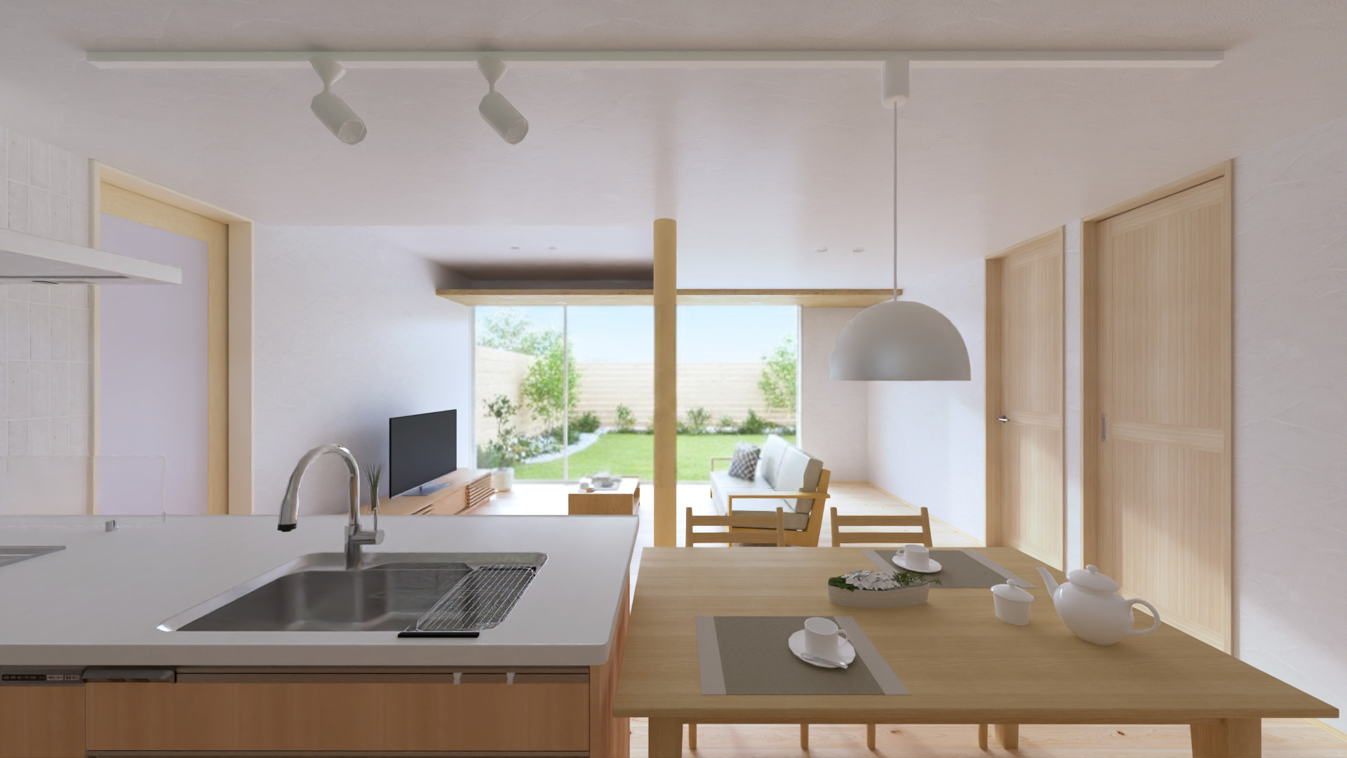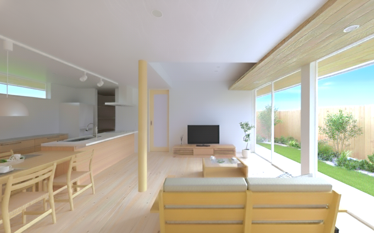 庭と一体になった22.5帖のLDK