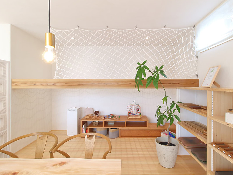 自然素材で造られたキッズスペースで