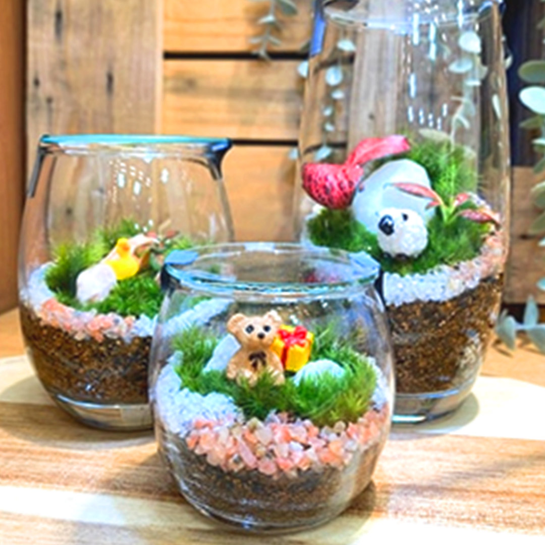 お家のどこにでも飾れる苔テラリウムを作成できます。