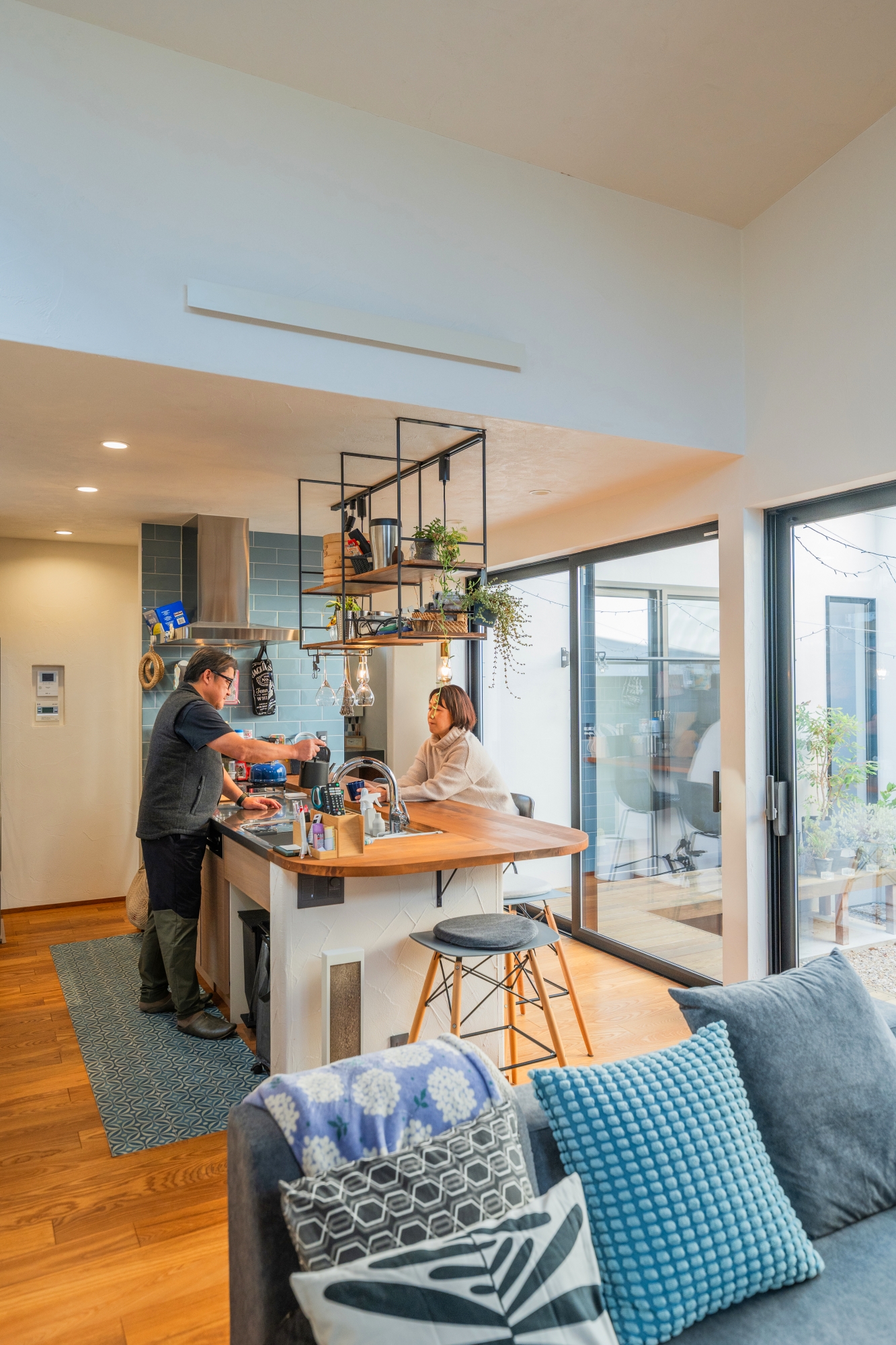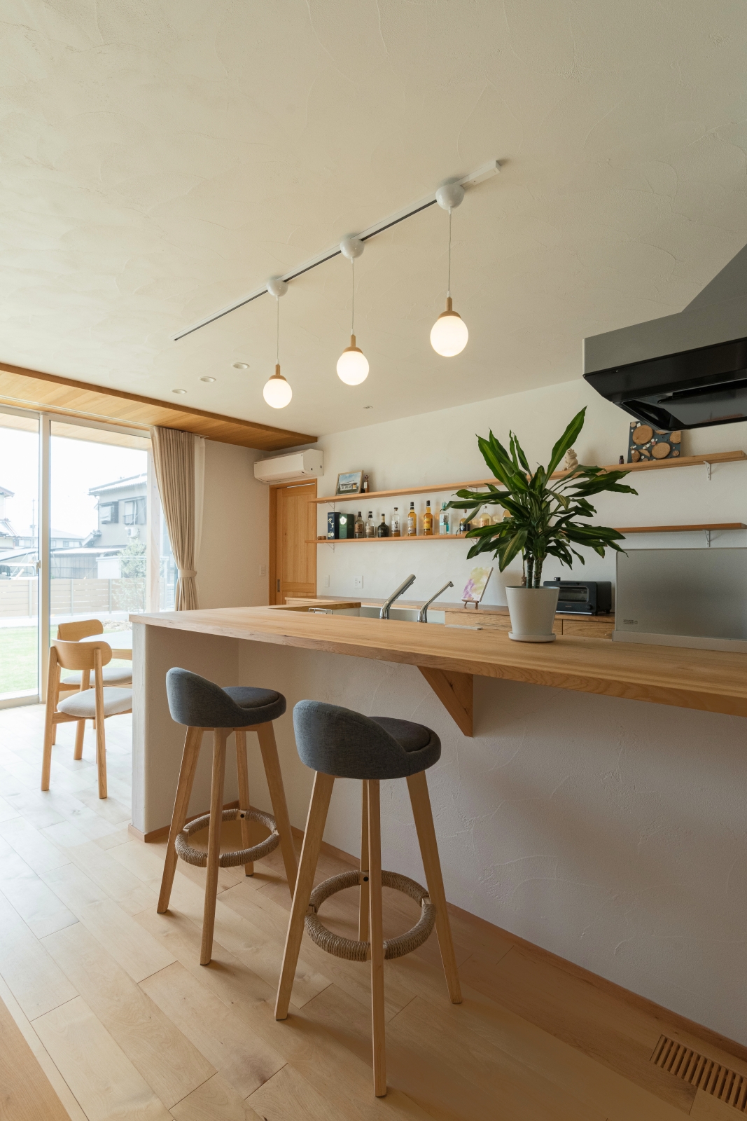 素敵なダイニングキッチンと行き来しやすいバイクガレージ