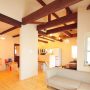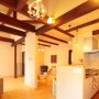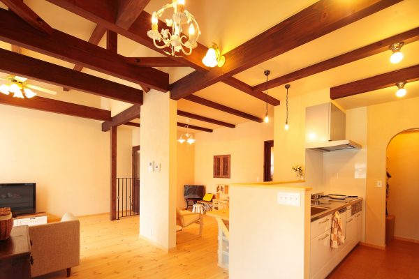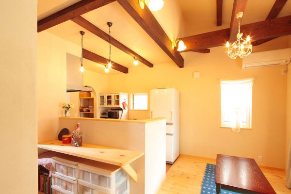 • 落ち着いた色で塗装をした梁が空間のアクセントに