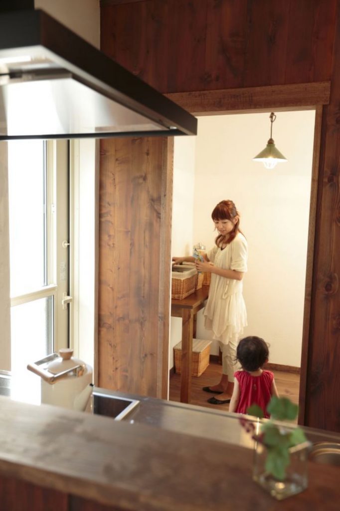 • キッチン背面のパントリーに冷蔵庫を収納することでスッキリした印象に
