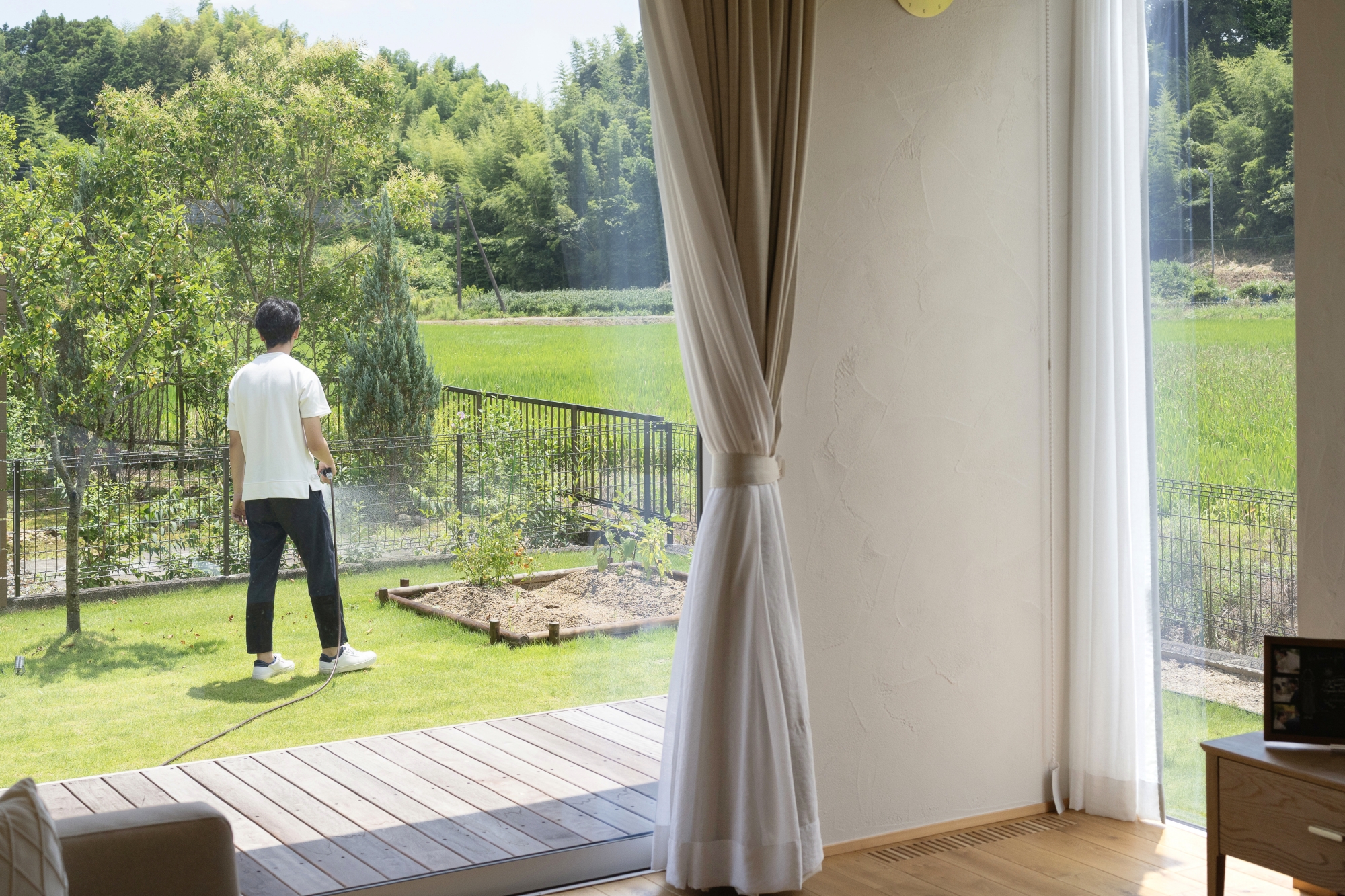 N様:元々自然が好きなので、本当に癒されています。実家が山が少ない環境だったので、その反動もあって、のどかで自然が見える場所にこだわって土地を探しました。