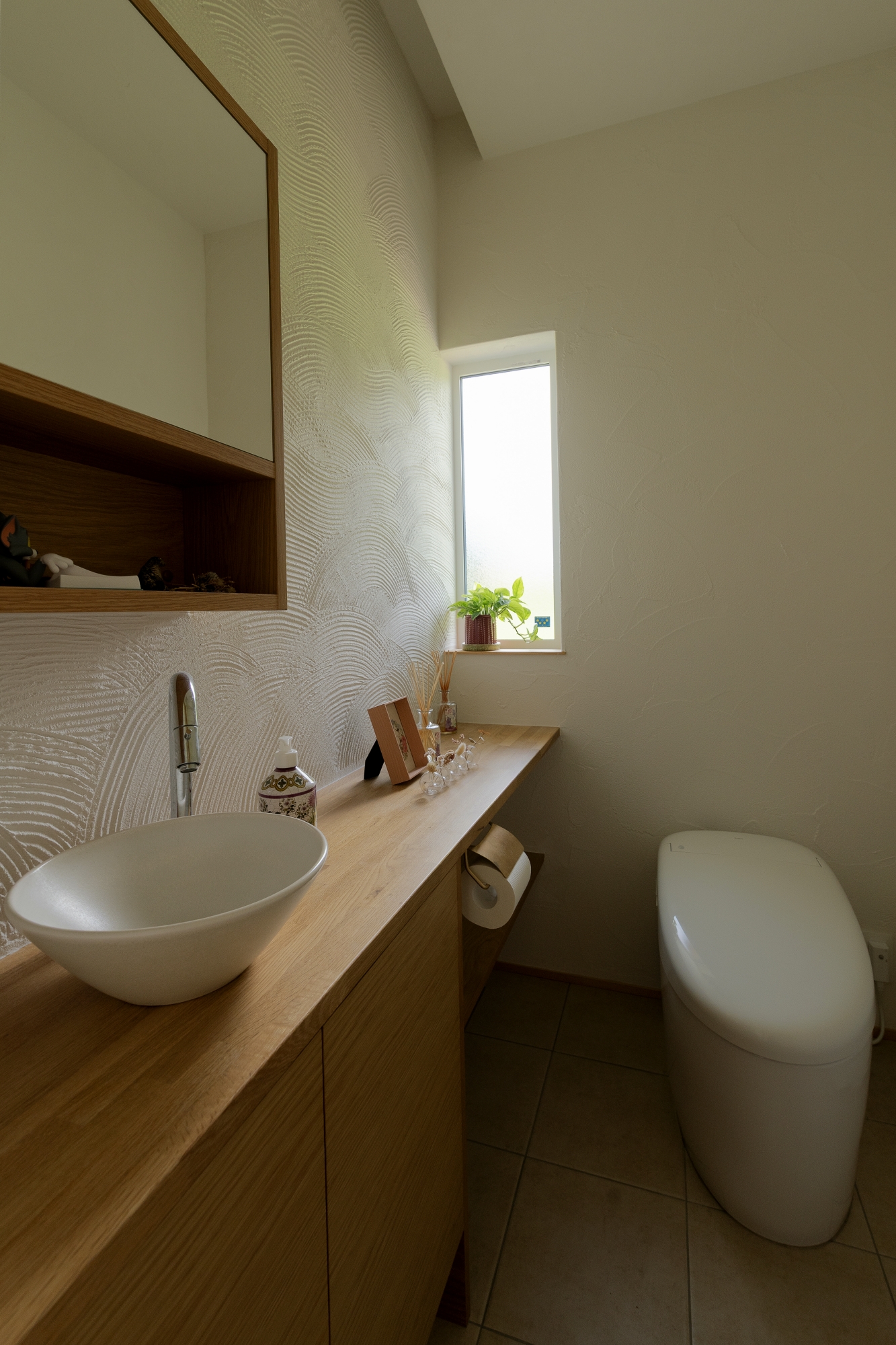 漆喰の壁もとてもおすすめです。似たような壁紙で妥協せず、漆喰がオプションじゃなくて標準仕様のところあるから、みたいなので教えたりしてます。