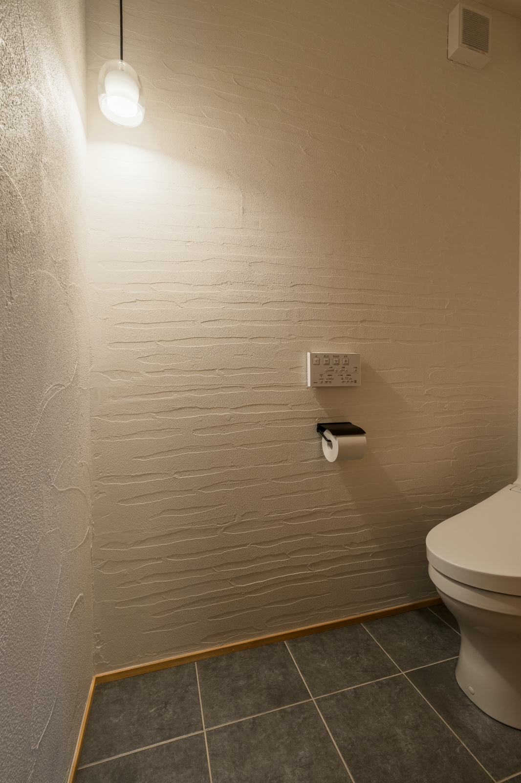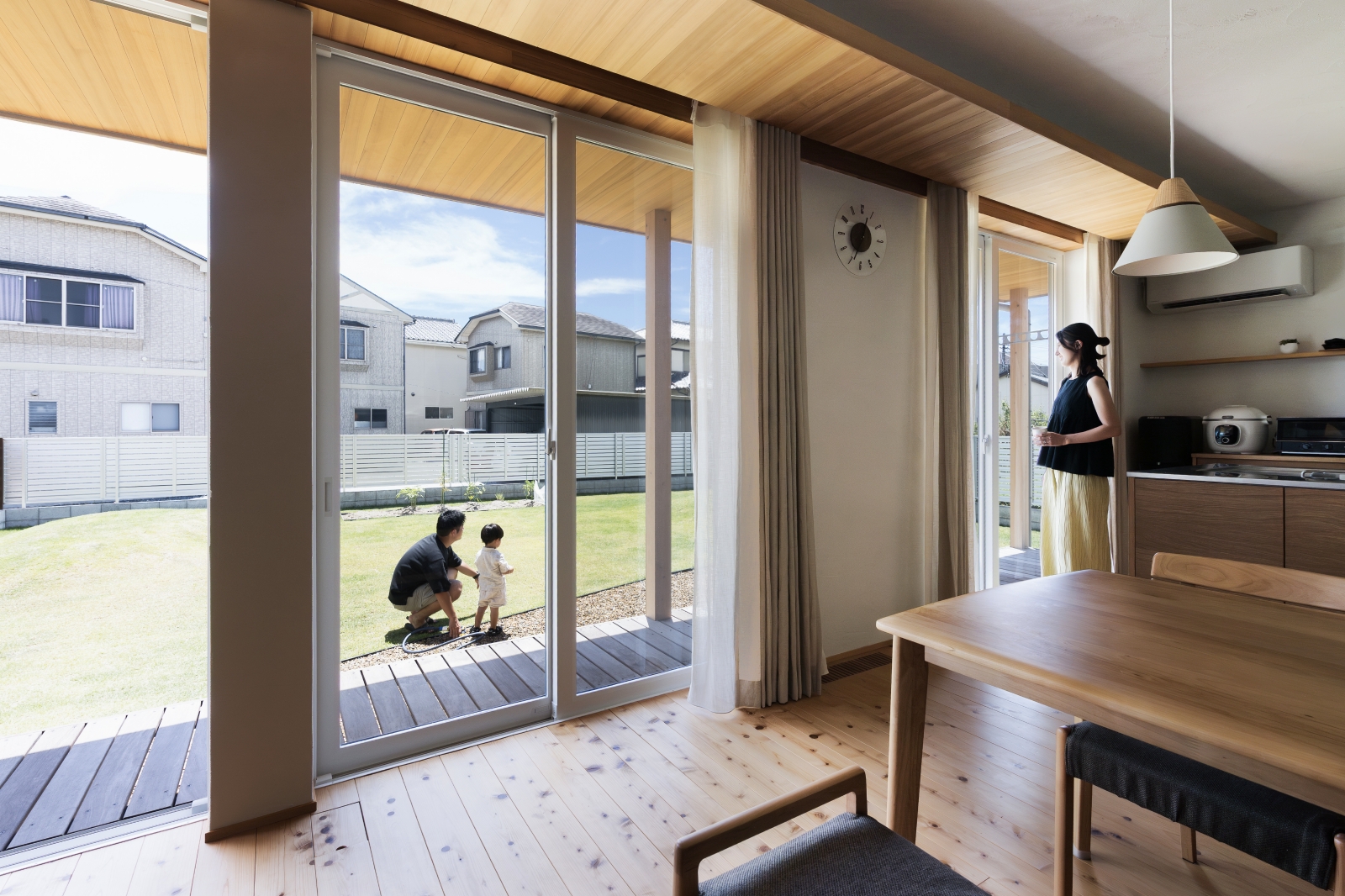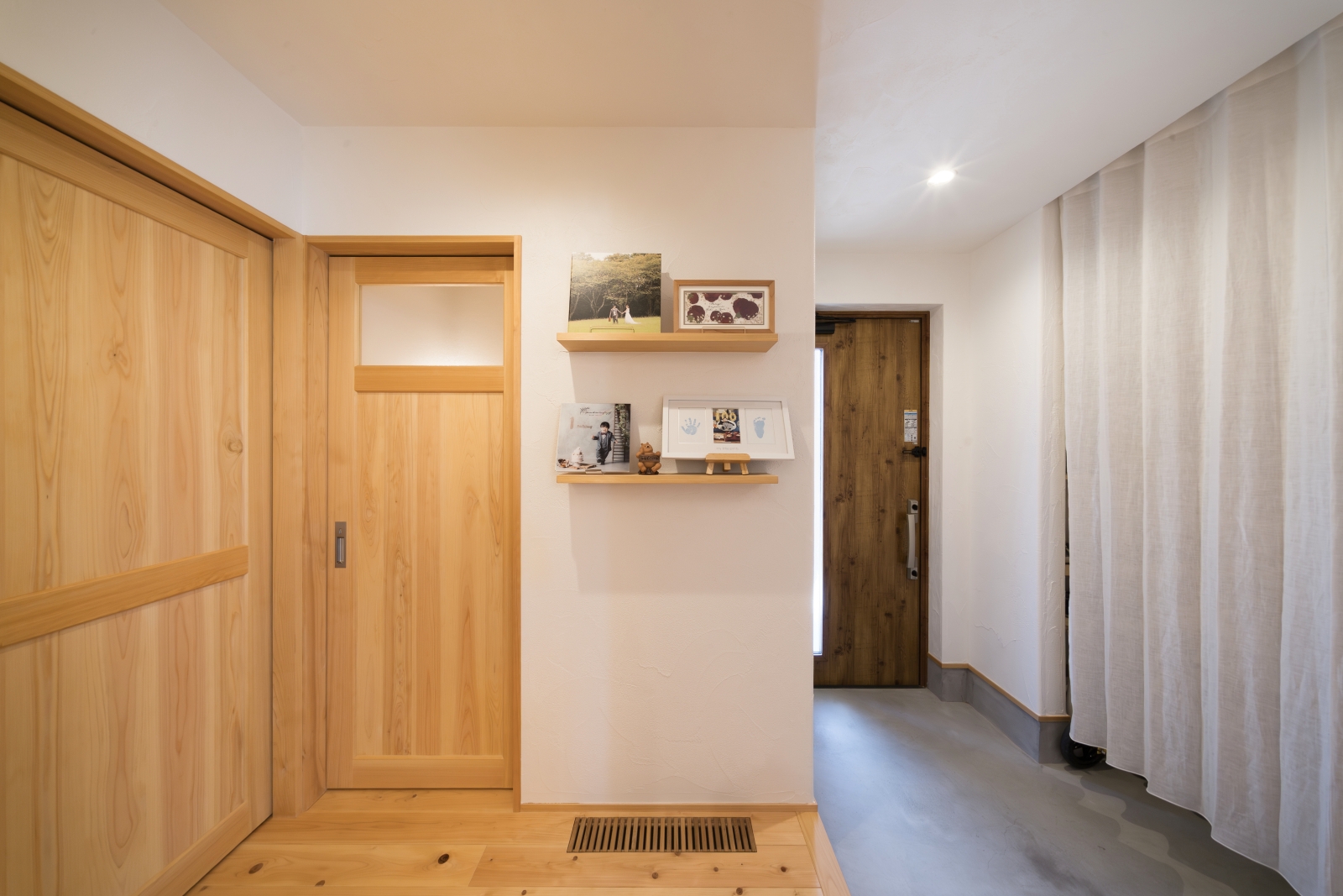 勝手口からリビングの方まで荷物が運べる動線もなんか楽だなと思いますし、玄関入ってすぐのトイレも、来客時にプライベートな空間を通らず使ってもらえるから良かったですね。