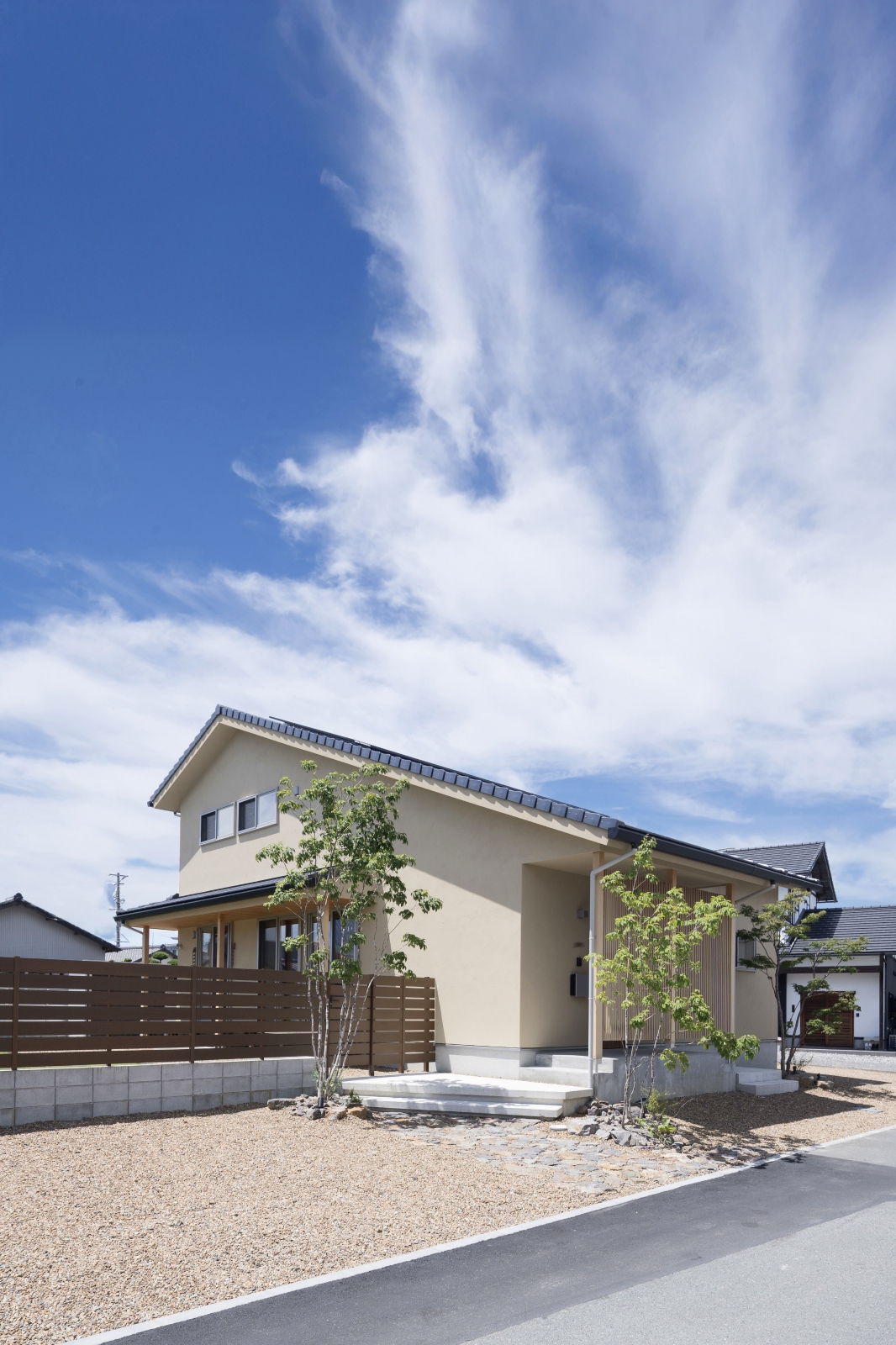 A:予算の都合で駐車場をコンクリートから砂利に削ったり諦めたこともありますが、植栽の配置や石畳など自然な雰囲気もあって砂利でよかったかなって。