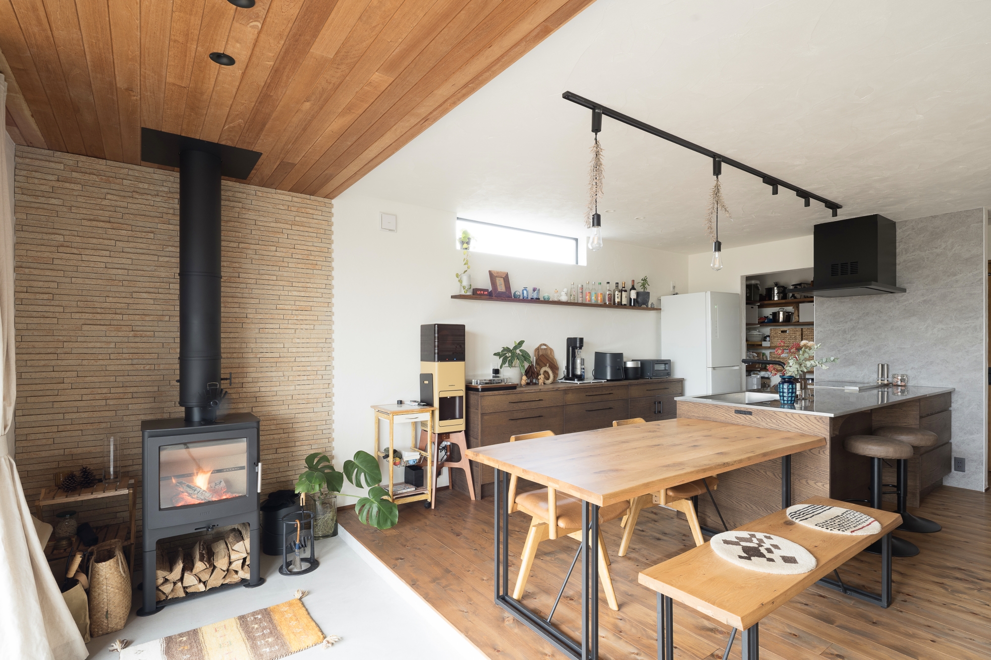 ご主人:フラットな(段差が少ない)設計は生活しやすいです。土間以外の掃除はルンバ1台で全てやってくれるので、掃除が楽になりました。家と外との繋がりや、手を入れ替える繋がりを意識することで暮らしが豊かになり、気持ちが良いと思います。少し頑張ってでも願いは叶えた方が良いと思います。